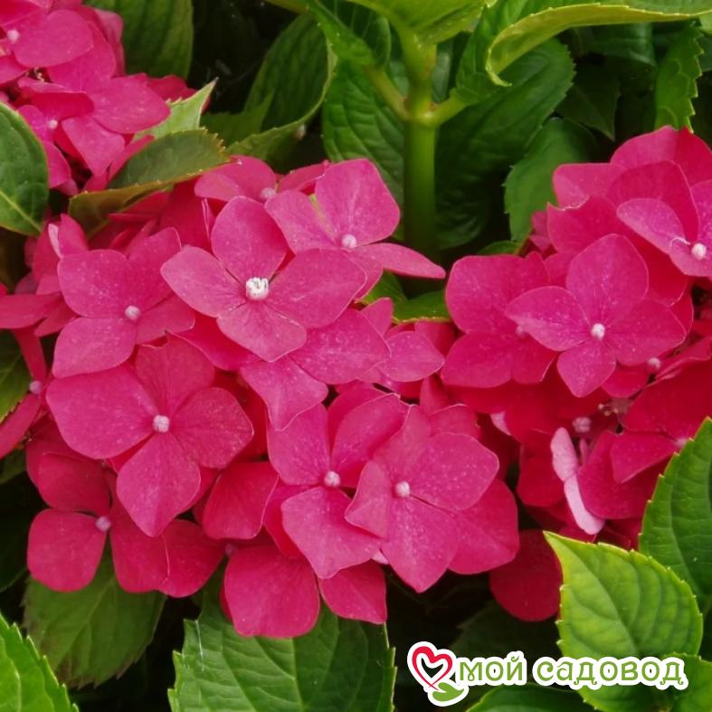Гортензия крупнолистная Мини Хорнли – небольшой куст, которые отлично смотрится в горшках, высота взрослого куста до 70 см., диаметр шаровидных соцветий 15 см. Выбирайте не ветреное место для гортензии, в зимний период, лучше перенести кустарник в более теплое помещение. Цвет лепестков цветоноса зависит от почвы, цвет может меняться от нежно-розового до насыщенного красно-розового. Рекомендации к уходу: Гортензия цветет на прошлогодних побегах, поэтому обрезка не рекомендуется; под зиму срезают соцветия, весной вырезают только погибшие или очень старые ветви.